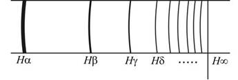 Hα(0,65628мкм), Hβ(0,4861мкм), Hδ(0,41017мкм). Олардың толқын формуламен өрнектеуге болады: