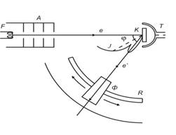 Электрондық-сəулелік түтік (А) жəрдемімен алынған моноэнергиялы электрондардың параллель шоғы никель кристалына (К) бағытталады. Электрондар кристалға түсіп шағылады. Шағылған электрондар қабылдағыш, гальванометр қосылған коллектор (Ф) көмегімен тіркеледі. Қабылдағышты электрондар шоғына қатысты кез келген θ - бұрышқабұруға болады. Кристалл бетінен шағылған е׳ электрондарды, Фарадей цилиндріне (Ф) жалғанған сезімтал гальванометр арқылы тіркейді (2.2-суретте көрсетілген). Фарадей цилиндрін бағыттаушы R арқылы шеңбер бойымен орын ауыстырып, үлкен бұрыштағы шағылған электрондардың бағыттарын анықтай алады. Сонымен қатар əртүрлі бағыттағы шағылған электрондардың интенсивтілігінде () бақылай алады. Осы қондырғы арқылы электрон жылдамдығын, F жəне A арасындағы үдетуші потенциалдар айырымы () арқылы оңай анықтауға болады.