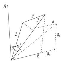 Атомның магниттік моменті оның толық моментімен байланысты болады, бірақ олар бір-біріне параллель емес.