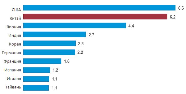 Рисунок 3. Крупнейшие импортеры нефти в 2013 г., млн.барр. в день