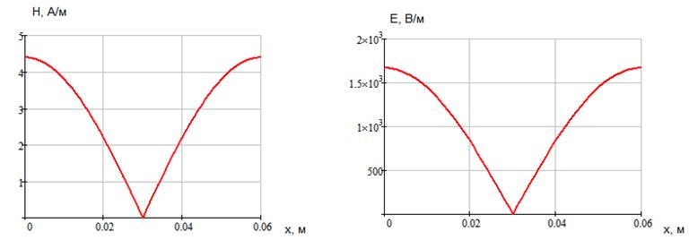 Указанные формулы были запрограммированы в математическом пакете MathCAD 14, где были построены графики данных зависимостей. Результаты показаны на Рис. 6, Рис. 7. Определение амплитуд составляющих электрического и магнитного полей для Случая 4: