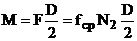 Вращающий момент равен произведению силы F на плечо D/2:
