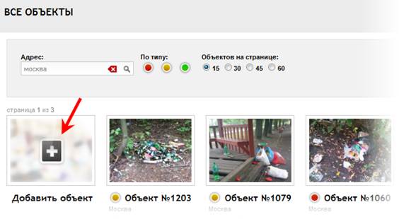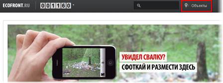 Для того чтобы добавить на сайт информацию о свалке или другом несанкционированном месте скопления мусора, Вам необходимо разместить на сайте фотографию данного объекта и его описание. Обратите внимание, что добавлять новые объекты на сайт могут только зарегистрированные пользователи. Перед добавлением нового объекта с компьютера Вам необходимо предварительно зарегистрироваться на сайте. При отправке фотографии объекта с мобильного устройства Вы будете зарегистрированы на сайте автоматически. Фотографируя новый объект, старайтесь сделать несколько снимков, чтобы на одном была видна свалка вблизи, на другом - ее расположение относительно ближайших ориентиров (на фоне ближайших домов, дороги, реки и т.д.). Это позволит другим людям быстрее и удобнее отыскать этот объект на местности. Если вы фотографируете с использованием телефона, при наличии, включите фукцию "прикрепления" координат к фотографии. Вариант 1. Добавление объекта с компьютера. Если фотография объекта находится на Вашем компьютере, то зайдите на сайт под своим логином и паролем и выберите меню «Объекты».