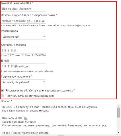 3. Нажмите на кнопку “На печать”, чтобы сохранить информацию о создании обращения на сайте, но при этом не печатайте само письмо. После этой процедуры Вы сможете загружать ответы приходящие из исполнительных органов. 4. Зайдите на сайт исполнительного органа власти, в раздел “Прием обращений”, либо “Интернет-приемна”, либо что-то подобное. Перейдите на страницу заполнения электронной-формы обращения. Вот некоторые ссылки для Челябинской области: - Администрация г. Челябинска: http://priemnaya.cheladmin.ru/add_request - Администрация г. Копейска: http://www.kopeysk-okrug.ru/internet-priemnaya/ - Администрация г. Магнитогорска: - Администрация г. Миасса: http://xn--80aplwa.xn--p1ai/forma.php - Администрация г. Кыштыма: http://adminkgo.eps74.ru/InternetReception - Администрация г. Озерска: http://www.ozerskadm.ru/feedback/index.php - Губернатор Челябинской области: http://pravmin74.ru/internet-priemnaya-0 - Роспотребнадзор по Челябинской области: Рассмотрим дальнейшие действия на примере формы Администрации г. Челябинска. Практически все графы в формах одинаковые с незначительными отличиями. 5. Вставляем скопированный ранее текст в поле “Вопрос”