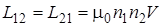 при этом нужно учесть, что изменение потока может происходить не только за счет тока в этом контуре, но и за счет тока, текущего в другом (соседнем) контуре (он тоже создает магнитное поле). Так, для двух витков с токами