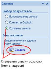 Мета: навчитися створювати серійні документи, відпрацювати навички створення та редагування серійних документів у Microsoft Word. ТЕОРЕТИЧНІ ВІДОМОСТІ Текстовий процесор Microsoft Word має хороші можливості щодо створення та редагування таблиць, а також роботи з різними типами об’єктів. Робота з ними починається з вкладки Вставка. Робота з серійними документами. Текстовий процесор Word для підготовки серійних (однотипних) документів пропонує інструмент Рассылки. Створюється шаблон текстового документа, до якого прикріплюється база даних з іменами, адресами і т.д. Ця база можне використовуватися різними документами. Команда Рассылки-Начать слияние-Пошаговый Мастер Слияния виводить панель майстра розсилок, в якій в діалоговому режимі встановлюються параметри розсилки (Рис.1).