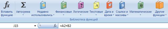 Теоретичні відомості Функції. Excel містить понад 400 вбудованих функцій. Для роботи з функціями існує спеціальна панель інструментів Функции (Рис.1), а також для швидкого виклику на панелі Главная існує кнопка