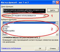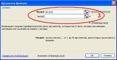Аргументами можуть бути числа, текст, адреси комірок, посилання на діапазон комірок, знаки дій. Кількість аргументів залежить від функції. Бувають функції без аргументів, наприклад: Сегодня(); Пи(). Вибір функції виконується за допомогою майстра функцій: