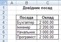 1. Відкрити новий файл. 2. Оформити Довідник посад, що містить оклади. Лист назвати Оклади.