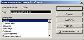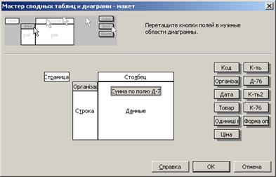 У вікні макету потрібно перетягнути мишею поле Організація у поле Строки, поле Д-76 перетягнути у поле Данные. Якщо замість слів «Сума по полю Д-76» з’явиться «Количество», то функцію можна замінити на іншу виконавши подвійний клик мишею на полі «Сума по полю Д-76». 4. Після встановлення параметрів натиснути ОК і Готово. Результат виконання на рис.1. Date: 2015-07-24; view: 454; Нарушение авторских прав |