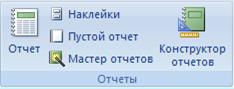 Рис. 8 Способи створення звітів: · Конструктор. · Майстер звітів. · Автоматичне формування звіту через макет. Створення звіту через майстра. 1. Перейти на вкладку Создание. Натиснути кнопку Мастер отчетов. 2. У діалоговому вікні вибрати таблицю або запит, на основі яких буде створено звіт. 3. Вибрати поля цієї таблиці, які переносяться у звіт. З вікна Доступные поля перенести потрібні поля у вікно Вибранные поля. Натиснути кнопку Далее. 4. В другому діалоговому вікні вибрати Уровни группировки. Натиснути кнопку Далее. 5. В третьому діалоговому вікні вказати поля, за якими треба зробити сортування. Натиснути кнопку Далее. 6. Вибрати макет для звіту і стиль. Натиснути кнопку Далее. 7. Дайте назву звіту. Поставте перемикач у поле Просмотреть отчет. Натиснути кнопку Готово. Коли звіт створено, відкривається меню для роботи зі звітами (Рис. 9).