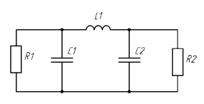 Катушку с такой индуктивностью можно реализовать на практике. Конденсаторы С2' и С2'' объединим в общий с емкостью С2 = С2' + С2'' = 1,275нФ + 0,1019нФ = 1,377нФ. Схема ВКС окончательно принимает вид, показанный на рисунке 6.