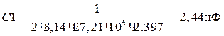 3. Поскольку рабочий диапазон частот передатчика очень узкий, выходной фильтр рассчитаем как П-образную цепь связи, работающую на фиксированной частоте, равной средней частоте диапазона передатчика f = 27,21 МГц. Модули реактивных сопротивлений емкостей и реактивные сопротивления индуктивностей, представленных на рисунке 4, определим по формулам [4]: