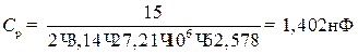 Расчет разделительных и блокировочных элементов в цепях питания будем производить, исходя из требования слабого их влияния на ВЧ цепи и соотношений, приведенных в учебнике [2]. Величину емкости разделительного конденсатора С р определим из условия: