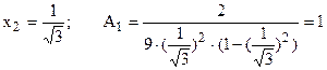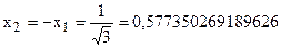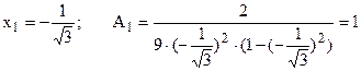 Рассмотрим применение этих формул. При n=1 имеем одну узловую точку внутри отрезка [-1; 1], которая определяется из уравнения