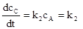 rA= - Разделение переменных и интегрирование в пределах c0A ® cA и 0®t приводят к: