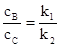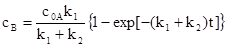 Интегрирование их в пределах c0A®cA и 0®t при дополнительном условии, что в начальный момент вещества B и C отсутствовали в реакционной смеси, приводит к уравнениям: