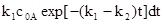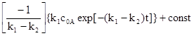 Примем, что при t=0: cA=c0A, c0B = c0C=0. Тогда интегрирование уравнения для исходного вещества приводит к: