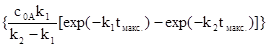 Для случая, отвечающего равенству констант скоростей (k1 = k2), раскрытие неопределенности приводит к уравнению:
