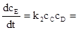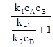 Приобщем подходе к кинетическому анализу многостадийного процесса составляется система дифференциальных уравнений, включающая в качестве независимых параметров константы скоростей всех стадий. В рамках же упрощенного рассмотрения, основанного на применении метода квазистационарных концентраций, число независимых кинетических параметров уменьшается так, что в выражение для скорости реакции входят не все константы, а лишь одна из них, или одна в комбинации с другими константами, которые представлены в уравнении в виде отношения. В этом можно убедиться, если, например, вернуться к выражению для скорости реакции: k1 А + B -® C k-1 k2 C + D ® E