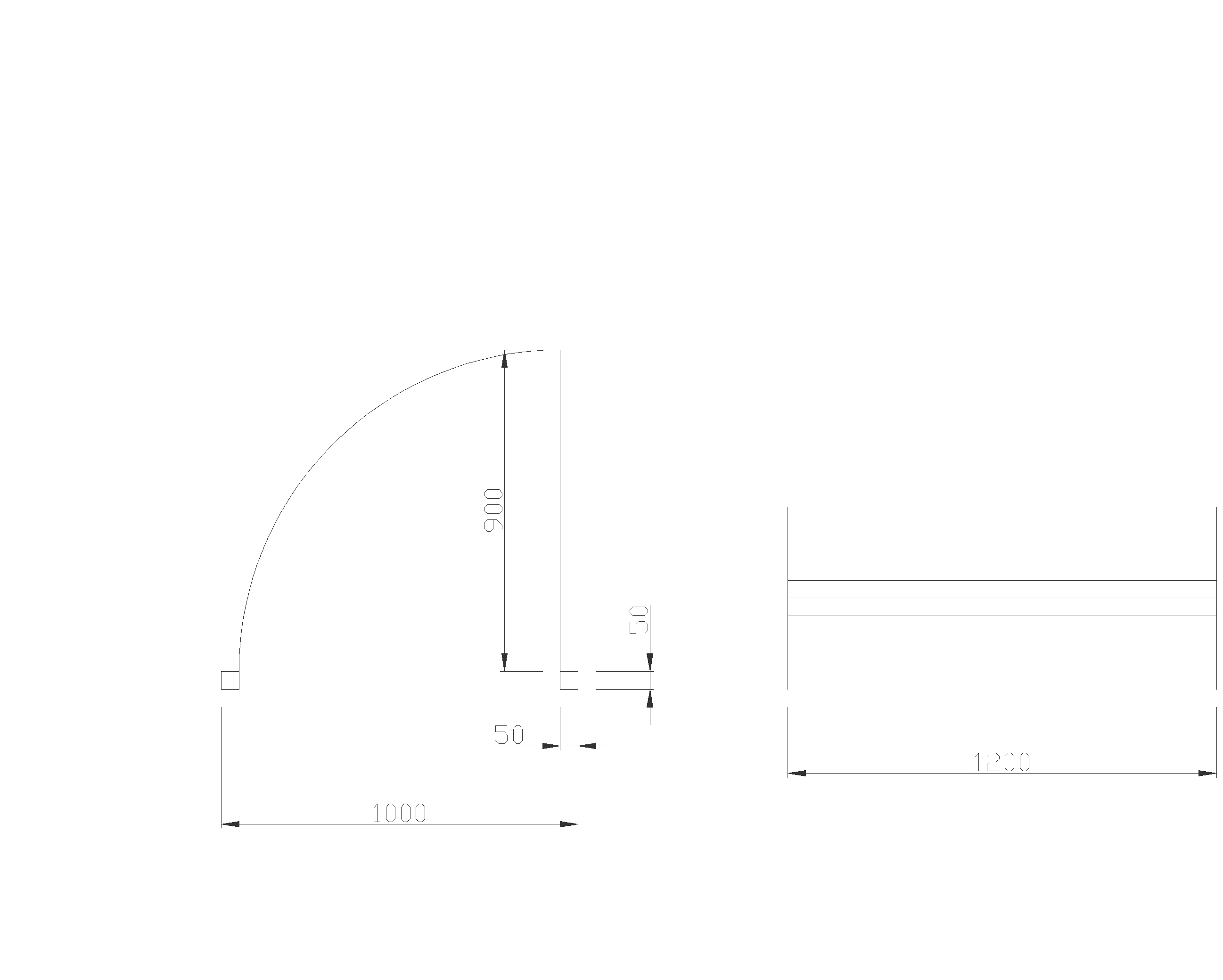 2. Нарисуйте в нулевом слое в одном из проемов дверь, состоящую из проекций дверного блока 50 х 50, дверного полотна 900 мм и следа раскрытой двери. Смотри на рисунок слева.