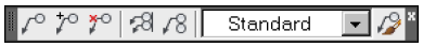 Рис. 2.3.1 Панель инструментов «Мултивыноска» В составе этих панелей шесть кнопок: t — создание мультивыноски в соответствии с текущим стилем; t — добавление выносной линии к мультивыноске; t — удаление выносной линии из мультивыноски; t — выравнивание аннотаций мультивыносок; t — группирование мультивыносок; t — работа со стилями мультивыносок. В панели входит также раскрывающийся список, в котором устанавливается имя теку-щего стиля мультивыносок.