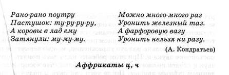 Звукч При произнесении звука ч губы слегка выдвинуты вперед. Зубы сжаты или максимально сближены. Передний край языка поднят и в первый момент образует смычку с нёбом за альвеолами, затем смычка взрывается и передний край языка отскакивает в положение, соответствующее артикуляции звука ш: весь язык имеет форму чашечки. В момент произнесения звука можно видеть положение губ, верхние и нижние резцы, а если приоткрыть рот, то и положение языка, его работу. Поднесенной ко рту рукой можно осязать резкий толчок теплой струи выдыхаемого воздуха. При работе над звуком ч следует прежде всего использовать остаточный слух ребенка. Если звук не удается получить на основе слухо-зрительно-го подражания, то при его постановке полезно исходить из уже усвоенного звука ц и показать ребенку, что артикуляция первого подобна артикуляции второго с той разницей, что смычка при ч образуется не спинкой языка, а его передним краем, соприкасающимся с альвеолами или несколько дальше — с передней частью нёба. Звук ч можно получить от звука ц, положив (в момент произнесения последнего) под язык зонд. В случае необходимости можно также воспользоваться вспомогательным двугубным слитным согласным, который был описан выше, применительно к постановке звука ц. При вызывании аффрикат в качестве вспомогательного Наиболее распространенными дефектами слитных звуков являются: i — замена слитных ц и ч фрикативными сиш. Эта замена '■-т считается регламентированной в дошкольный период,:; однако к концу обучения в детском саду в произношении слабослышащих детей должны быть аффрикаты; — вместо ц слышится тыс, а вместо ч — тыш (иногда с шепотным ы). Это происходит потому, что нет тесного ■,;■ слияния смычного и фрикативного моментов, s Кроме того, для звуков ц и ч характерны дефекты, описанные применительно к свистящим и шипящим звукам. Система упражнений по автоматизации звуков в речи