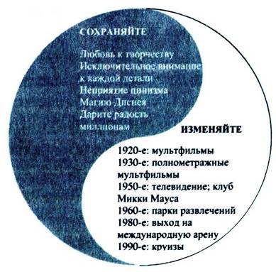 Через все эти перемены - от мультфильмов до полнометражных фильмов, от клуба Микки Мауса до Disney World - компания строго придерживалась неизменной системы ценностей, включавшей пылкую веру в творческую фантазию, фанатичное внимание к деталям, противление цинизму и сохранение «магии Диснея». Дисней также внушил всем единое понимание смысла того, что делала компания, а именно - дарить счастье миллионам, и особенно - детям. Эта цель сохранялась, невзирая на национальные границы и время. Когда мы с женой посетили Израиль в 1995 году, мы встретили человека, который распространял продукцию компании Disney на Ближнем Востоке. «Идея в том, - сказал он нам гордо, - чтобы вызвать улыбку на детском лице. Это очень важно здесь, где не хватает детских улыбок.» Walt Disney представляет собой классическую иллюстрацию принципа - «сохраняйте суть и стимулируйте прогресс», сохраняя ключевую идеологию неизменной, а стратегию и способы ведения бизнеса постоянно меняющимися. Date: 2015-07-24; view: 333; Нарушение авторских прав |