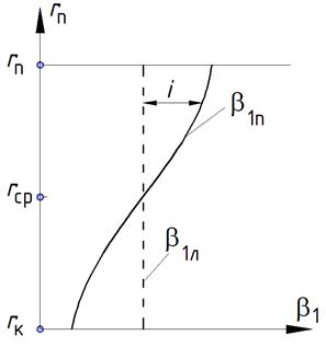Рис. 11.2. Изменение по высоте лопаточного и поточного углов b1