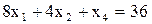Построим исходную симплексную таблицу и найдем начальное базисное решение. Им будут дополнительные переменные, т. к. им соответствует единичная подматрица. x3 =20 и x4 =36