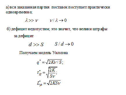 Чтобы заказанная партия прибыла ко времени ПОЛНОГО исчерпания первоначального уровня запаса С учетом интенсивности поступлений партии поставки имеем: