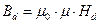 Коэффициентом пропорциональности в системе СИ является некоторая физическая константа µo - абсолютная магнитная проницаемость вакуума. Если в некотором объеме существует еще и вещество, то индукция магнитного поля зависит не только от напряженности внешнего магнитного поля, но и от намагниченности вещества