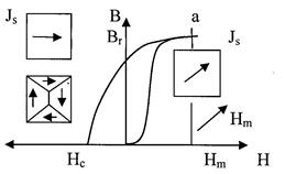 Когда ферромагнетик намагничен до насыщения, то векторы намагниченности доменов повернуты в одну сторону и параллельны. Чтобы размагнитить такой магнит, надо у половины однодоменных частиц повернуть векторы намагниченности в одну сторону на 90°, а оставшейся половины - на 90° в другую сторону. При этом необходимо затратить определенную энергию, которую можно рассчитать по формуле