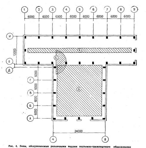 объемно-планировочного и конструктивного решения Проектирование промышленных зданий ведут с учетом особенностей технологического процесса и создания благоприятных условий труда для работающих. Технологическая часть проекта, разработанная инженерами-технологами данной отрасли производства, содержит: план расстановки технологического оборудования (с показом проездов, проходов, участков складирования и др.); габаритную высоту стационарного оборудования; сведения о внутрицеховом транспорте (вид, грузоподъемность, габариты и т. д.); параметры внутреннего микроклимата (температура и влажность воздуха, степень его чистоты и ДР-); категорию производства по степени пожарнойчшасности (А, Б, EL Г, Д); количество работающих в цехе. Технологическая часть проекта служит основой для разработки строительной части проекта промышленного здания. Таким образом, технологический процесс является основным фактором, определяющим архитектурно-строительное решение здания, его санитарно-техническое и инженерное оснащение. Строительная часть проекта разрабатывается так, чтобы промышленное здание обладало планировочной гибкостью, т. е. было приспособлено к изменениям технологического процесса.