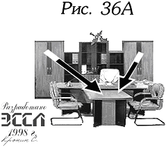 | | Рис. 36аНа рисунке 36а изображен классический кабинет. Стрелками показан «клин». При этом, как можно заметить, даже в обычном кабинете присутствуют практически все рассмотренные нами выше элементы (Рис. 36) – образуют целостную систему.