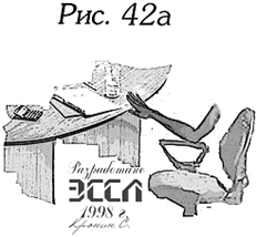 | Рис. 39Рисунок 39 отражает сложную комбинированную ситуацию и даёт «вид сверху» одновременно и обстановки кабинета, и предметов на столе. А также показывает, как можно победить в чужом кабинете: взять инициативу, выйти из-под удара, установить с хозяином кабинета контакт «на равных» – и в итоге, легко достигнуть того, зачем вы пришли.