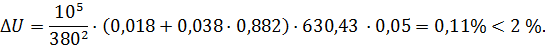 6.2.2 Выбираем шинопровод ШМА 4-1250-У3, с номинальным напряжением до 660 В и номинальным током I н = 1250А. [3] 6.2.3 Выполняем проверку шинопровода на потерю напряжения: