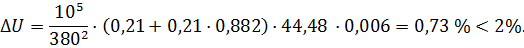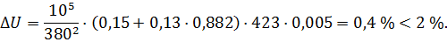 где Р = Р р ̸ n т – расчётная нагрузка на трансформатор или шинопровод, кВт; l = l шма ̸ 2 – расчётная длина шинопровода, км.