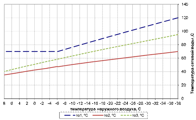 График температур сетевой воды в зависимости от температуры наружного воздуха представлен на рисунке 3.1.
