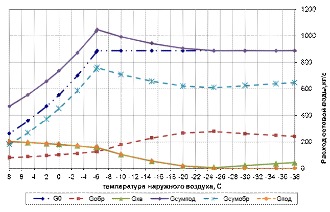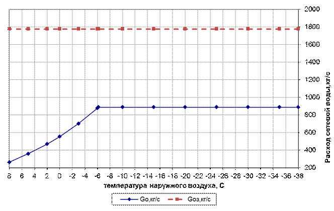 График и расхода сетевой воды в зависимости от температуры наружного воздуха представлен на рисунке 3.2.
