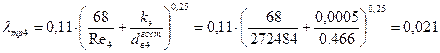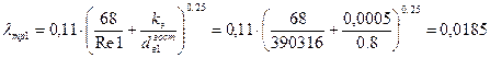 4.4.7 Вычисляется коэффициент гидравлического трения на участках тепловой сети.