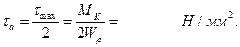 Определяем коэффициенты запаса прочности вала в сечении С по напряжениям кручения