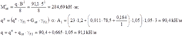 Произведем проверку вспомогательной балки ВБ: Момент с учётом собственного веса: