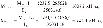 Определяем момент, воспринимаемый полкой и стенкой главной балки: