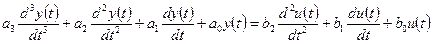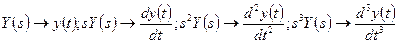 Передаточная функция системы W (s) – это отношение изображения по Лапласу сигнала на выходе к изображению по Лапласу сигнала на входе при нулевых начальных условиях. Чтобы перейти от передаточной функции к дифференциальному уравнению системы, нужно перейти из области изображений по Лапласу во временную область. Из (1) следует