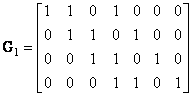 Аналогично, порождающая матрица для циклического кода (7,4), образуемая порождающим полиномом , равна