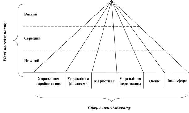 Рис. 1.3. Співвідношення сфер і рівнів менеджменту
