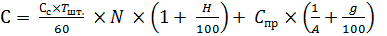 где С - годовая технологическая себестоимость, у.е.; Сс - себестоимость одного станкочаса или часовая ставка рабочего, у.е./час; Тшт - штучное время, мин; N - размер годовой программы, шт; Н - накладные расходы цеха, %; Спр - стоимость приспособления, у.е.; А - срок амортизации приспособления, год; q - годовые расходы, связанные с эксплуатацией приспособления, %;