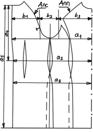 Рисунок 2.6 – Схема измерений чертежа основы женской плечевой одежды