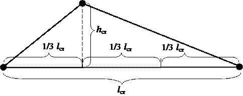 3. Построение биокинематической схемы статической позы спортсмена осуществляется на листе миллиметровой бумаги формата А4 в соответствии с фотографией и измеренными длинами звеньев тела спортсмена в масштабе 1:10. Для этого длины отрезков всех звеньев тела следует откладывать на миллиметровой бумаге в десять раз меньше, чем реальные длины звеньев тела спортсмена в строгом соответствии с произведенными измерениями. Биокинематическую схему следует начинать с построения линии опоры, которую следует провести горизонтально по самой жирной линии миллиметровой бумаги ближайшей к ее нижнему краю, но не по рамке и не по краю листа бумаги. Далее выполняются построения опорных звеньев тела спортсмена, то есть тех звеньев тела, которые соприкасаются с поверхностью опоры, чаще всего, начиная со стопы. Построение стопы следует начинать с построения линии подошвы стопы, на которой отмечаются точками кончик стопы и пяточный бугор в соответствии с измеренной длиной стопы l ст. Затем полученный отрезок (подошва стопы) делится на три равные части. Через точку одной трети стопы, кототрая ближе к пятке, проводится перпендикуляр к подошве, и на нем откладывается высота стопы h ст. Полученная точка является центром голеностопного сустава, и ее следует соединить отрезками с крайними точками подошвы – с пяточным бугром и с кончиком стопы (рис. 1.1.).